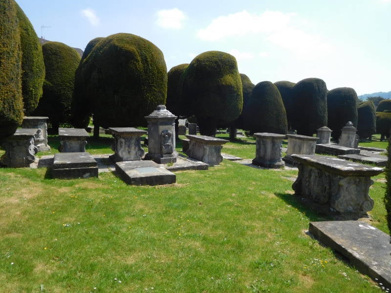 Bij de kerken ook meestal oude graven die soms terug gaan tot in 1600.
